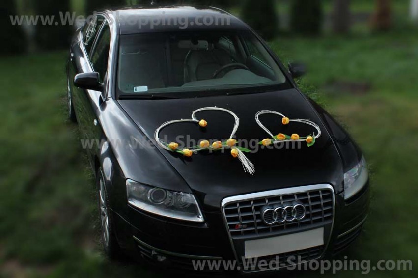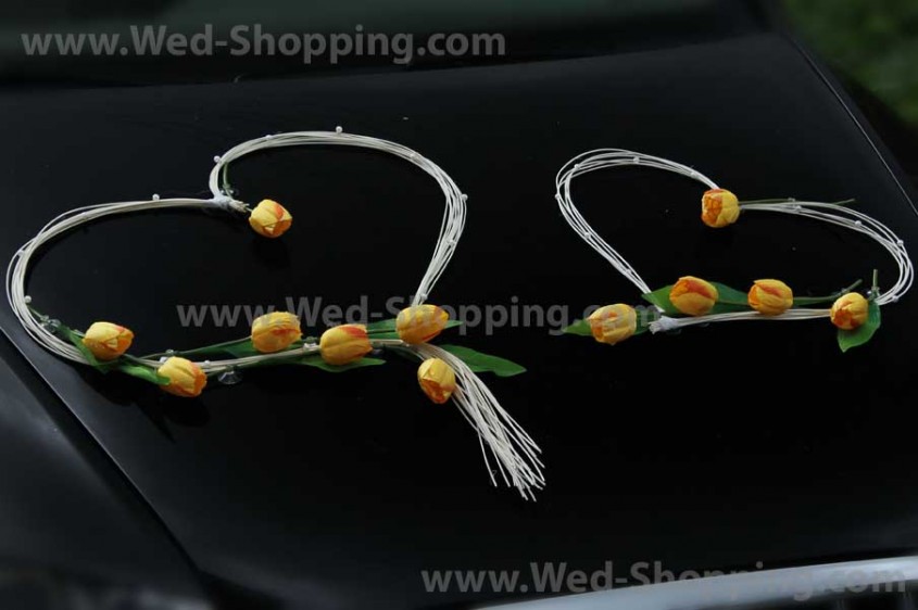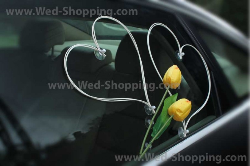 En unik dekoration för din bil. 2 stora hjärtan dekorerade med pärlor (monterade på en sugkopp) katalog 2 hjärtan på baksidan av glas - pärlor (med sugkoppar) katalog 4 hjärtan på sidorna av bilen (med sugkoppar) katalog Set av tulpaner med sugkoppar. All dekoration är fäst till sugkoppen. Sugkoppar skadar inte billack och håller kvar dekoration. Dekoration är säkert för billack.