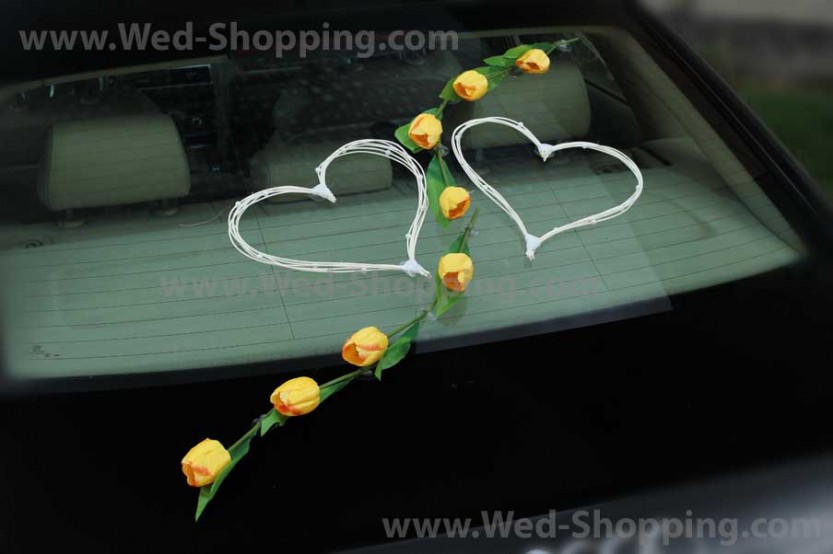 Brudsalong » Dekorationer » Bildekoration till bröllop » Bil buketter bröllop gula tulpaner konstgjorda blommor
