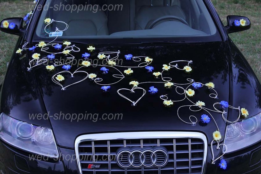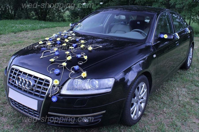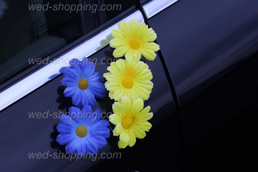 Brudsalong » Dekorationer » Bildekoration till bröllop » Bil till bröllop gul-blå daisy