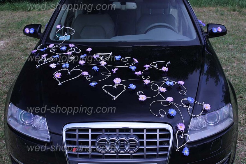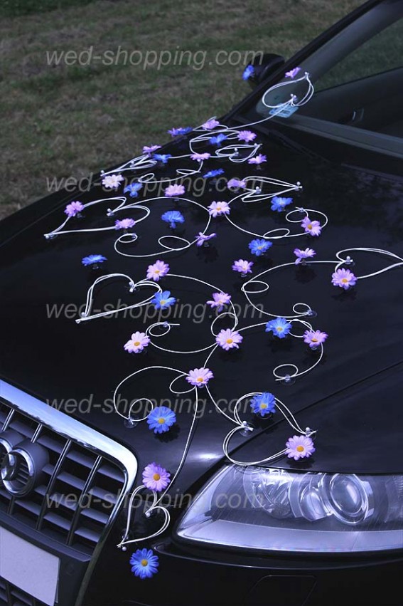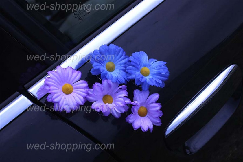 Brudsalong » Dekorationer » Bildekoration till bröllop » Bil till bröllop violett-blå daisy