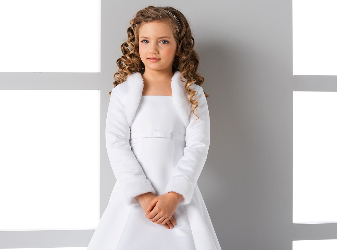Bolero i isolerad satin med långa ärmar för första nattvardsklänning, balklänning, festklänningar elle cocktailklänning