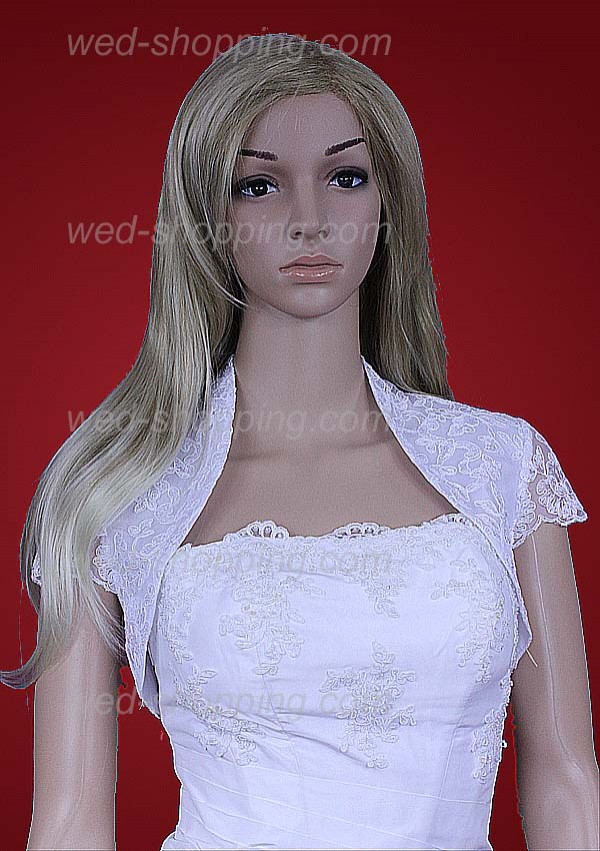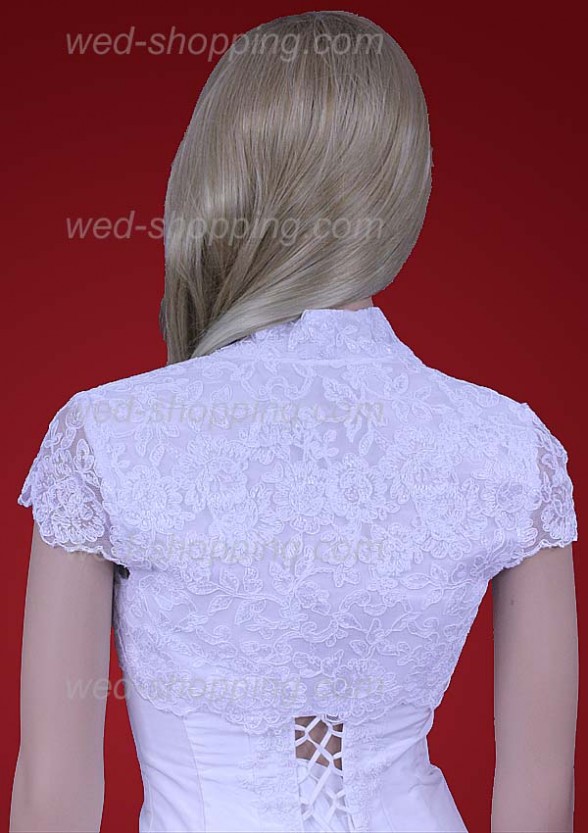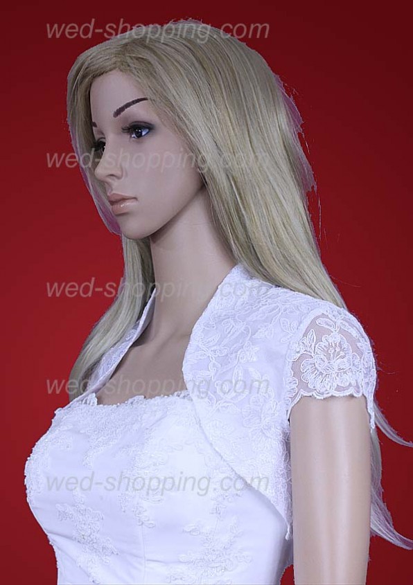 Bolero kort ärm i satin med spets. FÄRG: ivory& vit Storlek: S-6XL (Extra Stor Storlek)