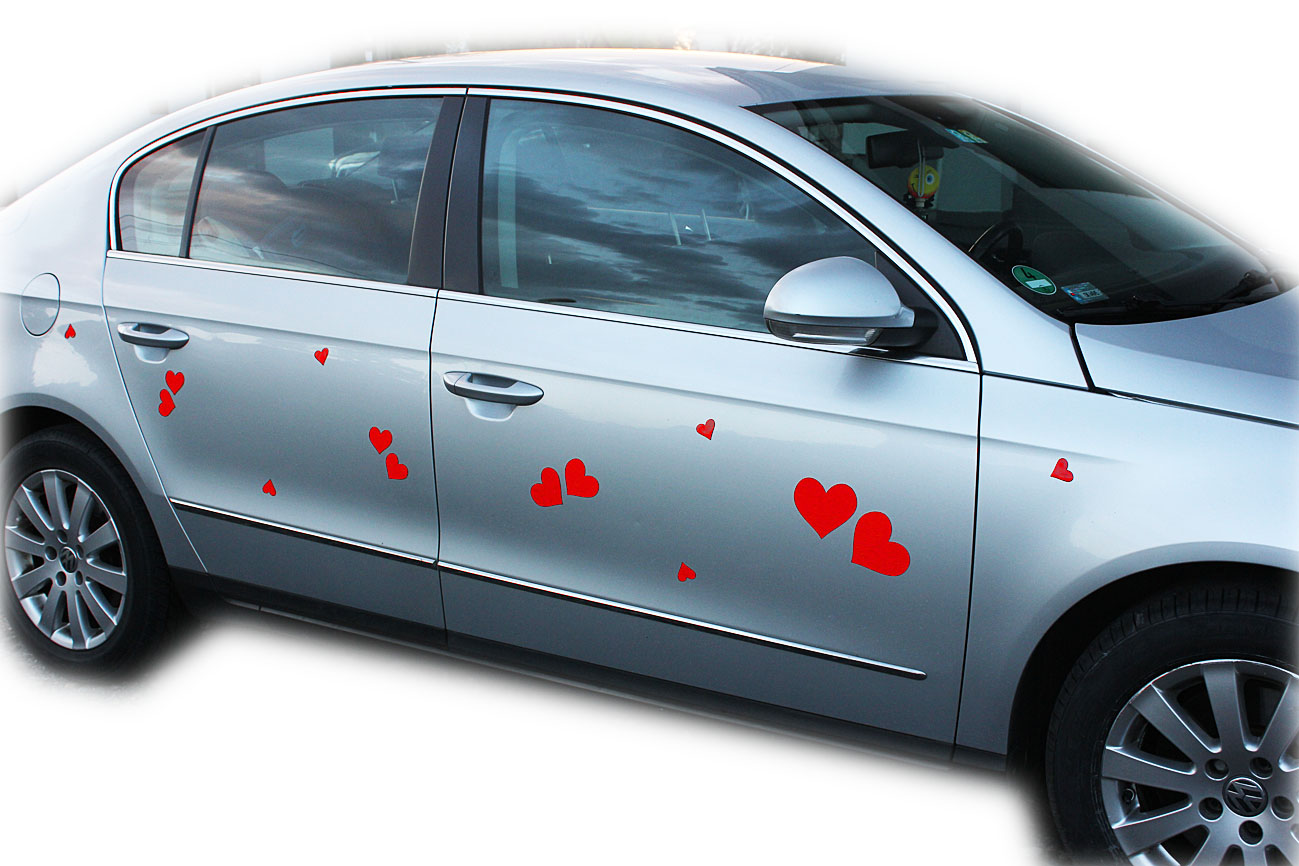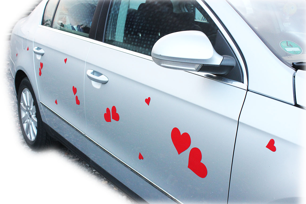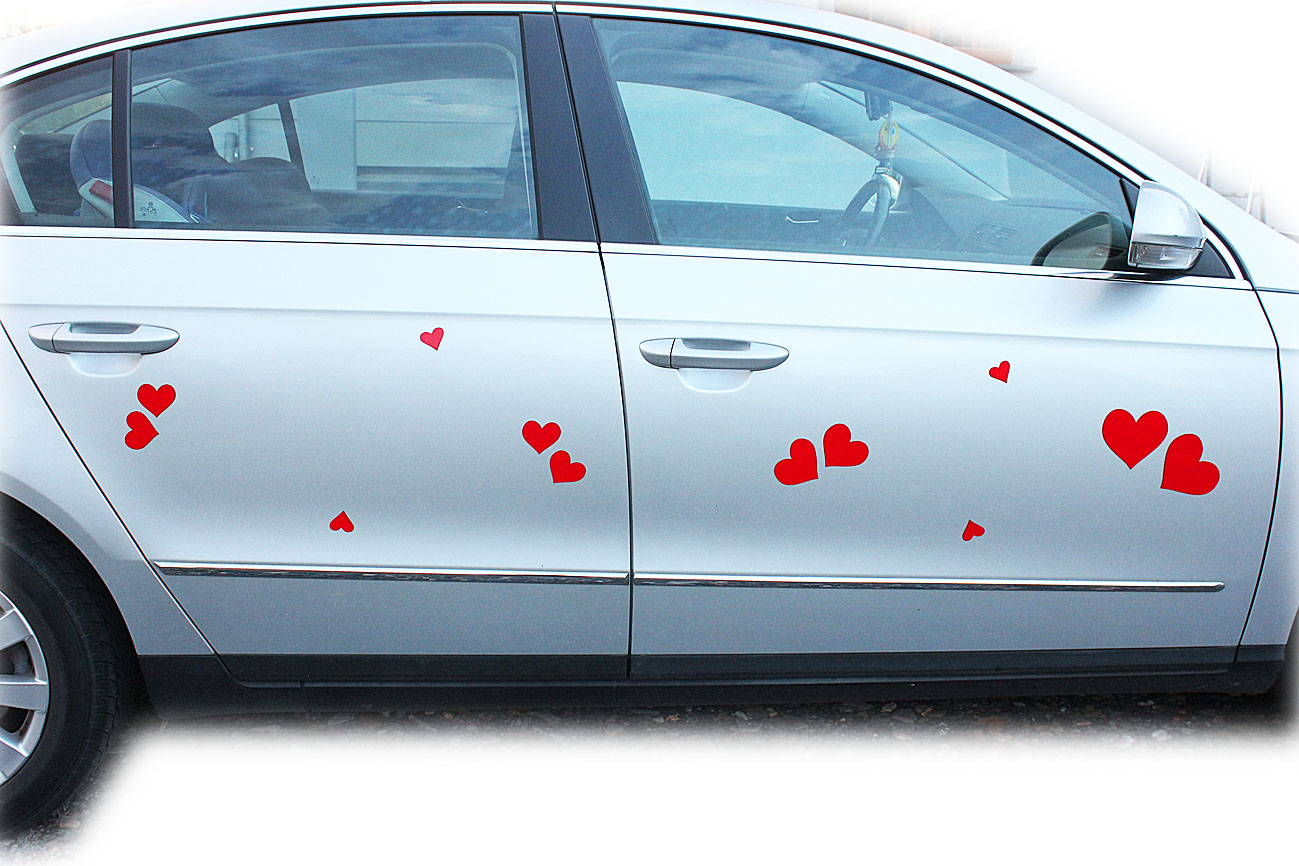 Lensemble comprend: - 2 grands coeurs (115 x 105 mm) - 2 coeurs (80 x 72 mm) - 4 coeurs (60 x 53 mm) - 7 plus petits coeurs (38 x 35 mm) quelle que soit la météo à réutilisable enlèvement sans résidus Installation facile Coeurs magnétique Decoration Kit