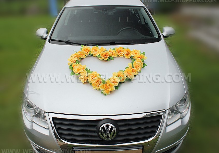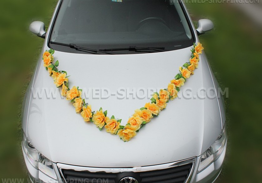 Brudsalong » Dekorationer » Bildekoration till bröllop » Gula rosor för en bil