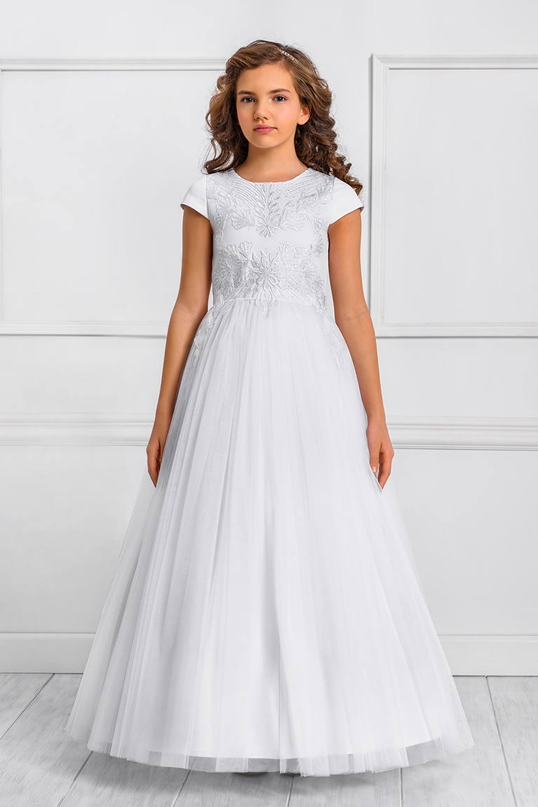 Denna kommunionsklänning är ett elegant val för en speciell dag.