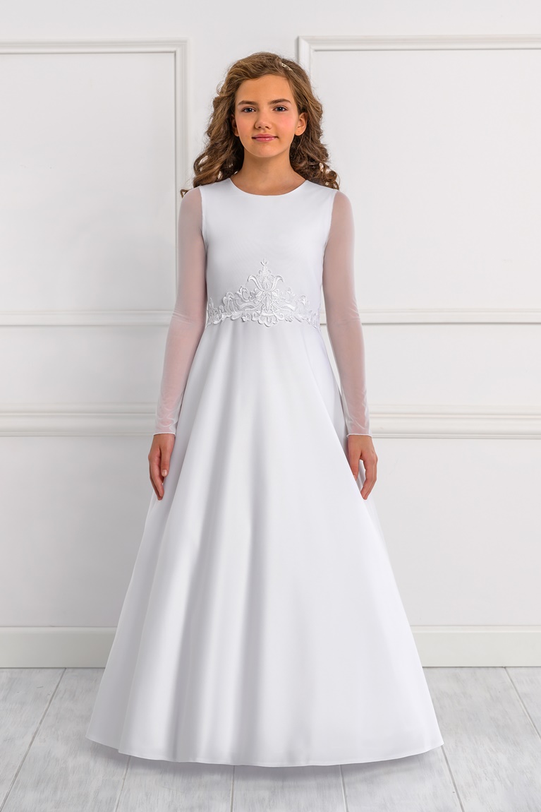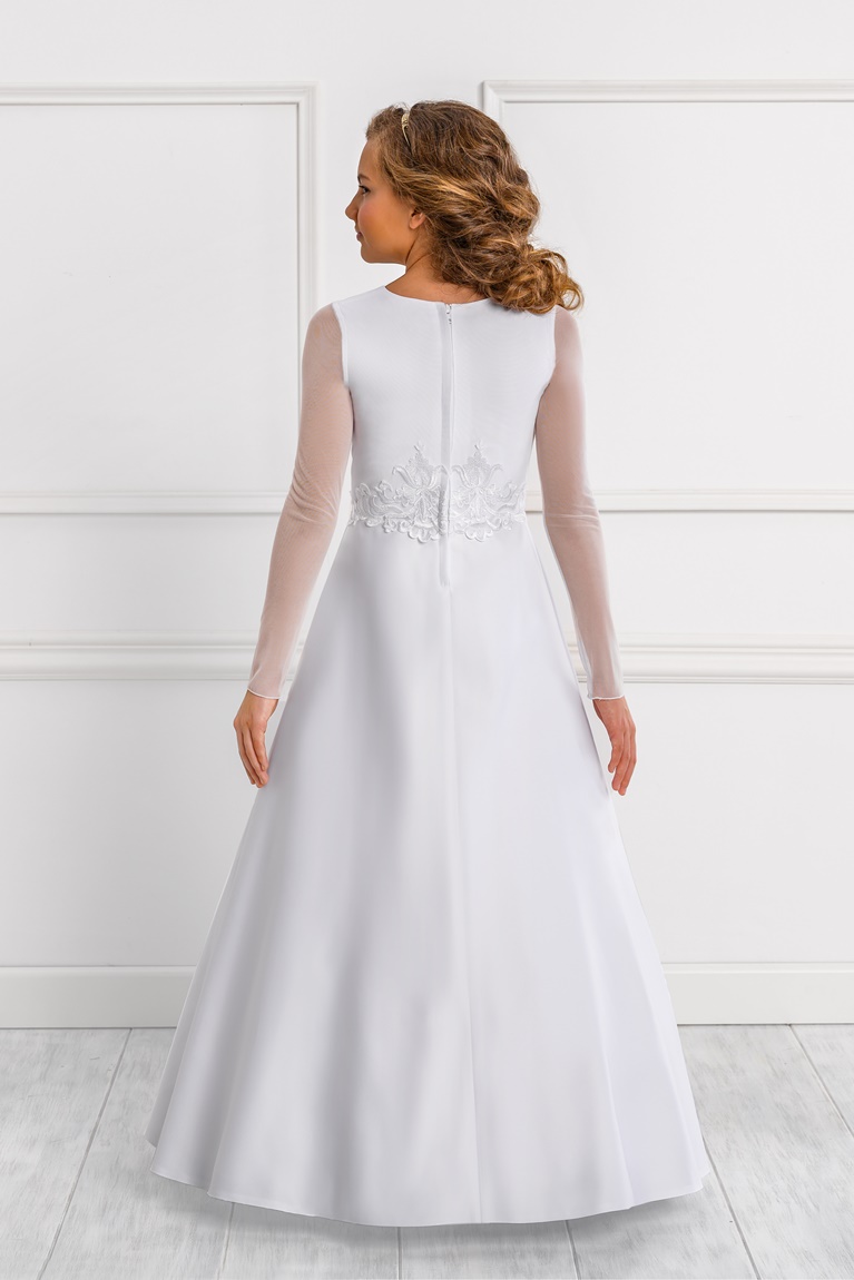 Med sin vidsträckta och eleganta nederdel blir denna långa klänning den perfekta outfiten för små flickor som vill stråla under sin första kommunion.