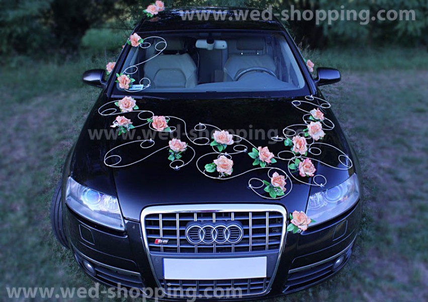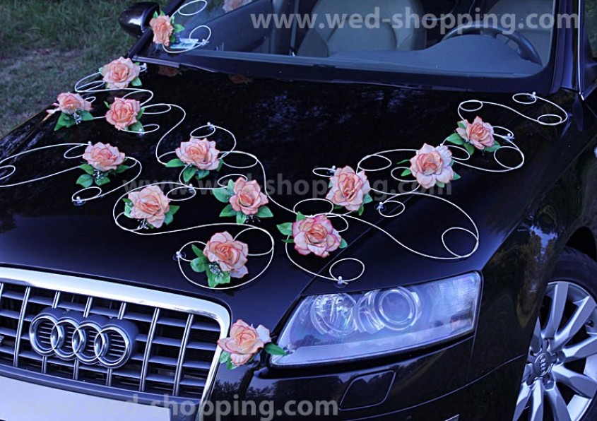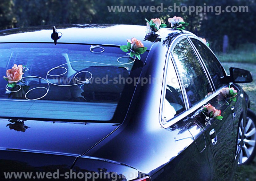 Brudsalong » Dekorationer » Bildekoration till bröllop » Pynt bröllopsbil rosor salmon