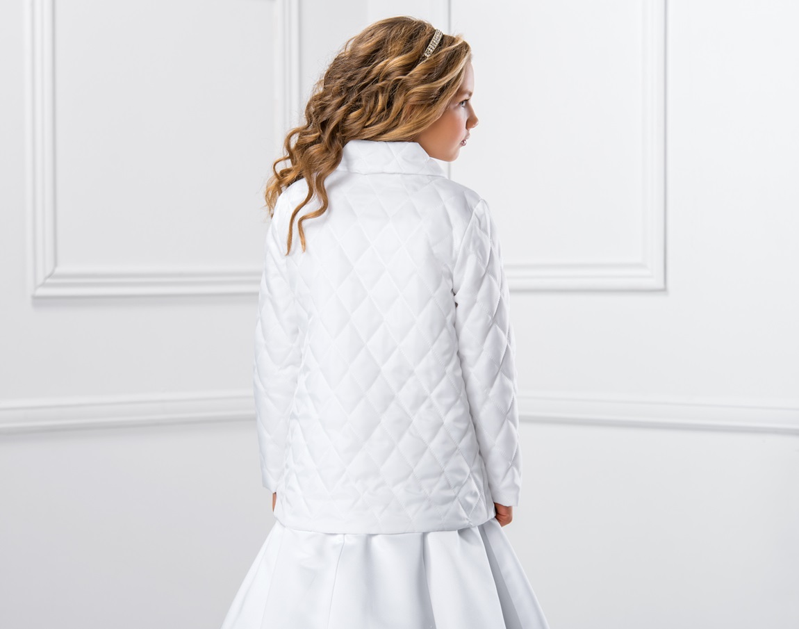 Quiltad isolerad kappa med långa ärmar och krage för första nattvardsklänning, balklänning, festklänningar elle cocktailklänning